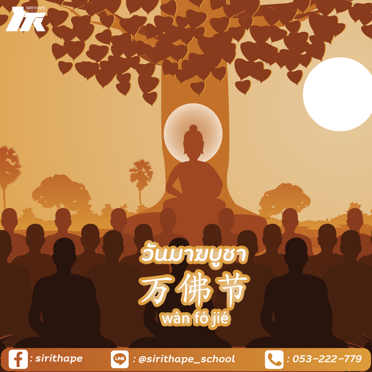 วันมาฆบูชา 万佛节 (wàn fó jié) เป็นวันสำคัญทางศาสนาอีกวันหนึ่ง ตรงกับวันขึ้น 15 ค่ำ เดือน 3 มีความสำคัญคือเป็นวันที่พระพุทธเจ้าทรงแสดงโอวาทปาติโมกข์แก่พระสงฆ์เป็นครั้งแรก และเป็นวันที่มีพระสงฆ์จำนวน 1,250 รูป มาประชุมพร้อมกันโดยไม่ได้นัดหมาย ณ วัดเวฬุวัน เพื่อสักการะพระสัมมาสัมพุทธเจ้า