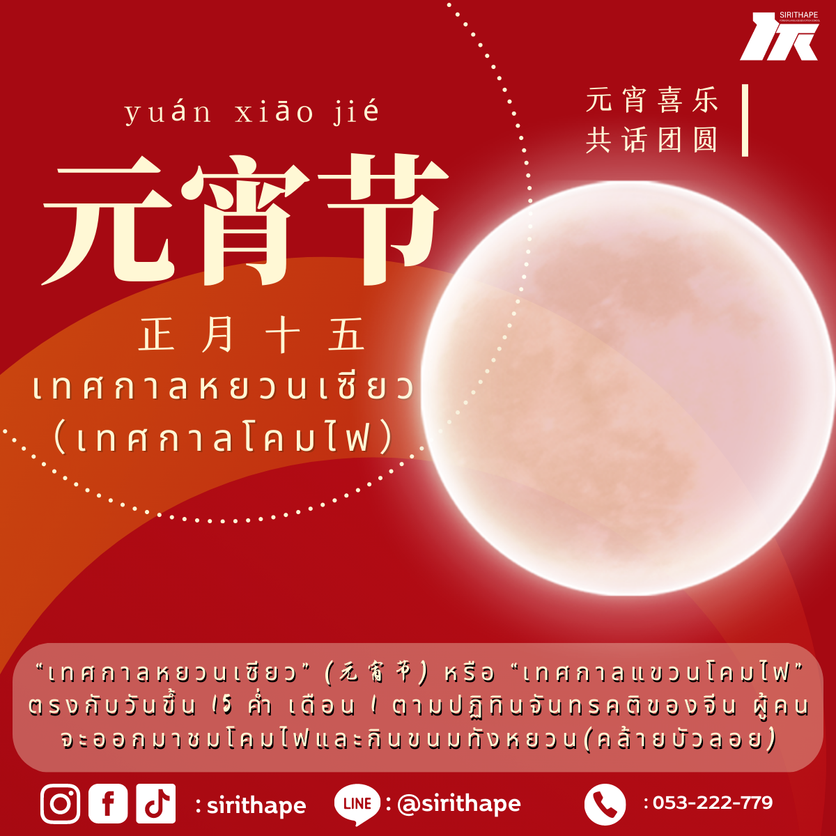“เทศกาลหยวนเซียว” (元宵节) หรือ “เทศกาลแขวนโคมไฟ” ตรงกับวันขึ้น 15 ค่ำ เดือน 1 ตามปฏิทินจันทรคติของจีน ผู้คนจะออกมาชมโคมไฟและกินขนมทังหยวน(คล้ายบัวลอย)