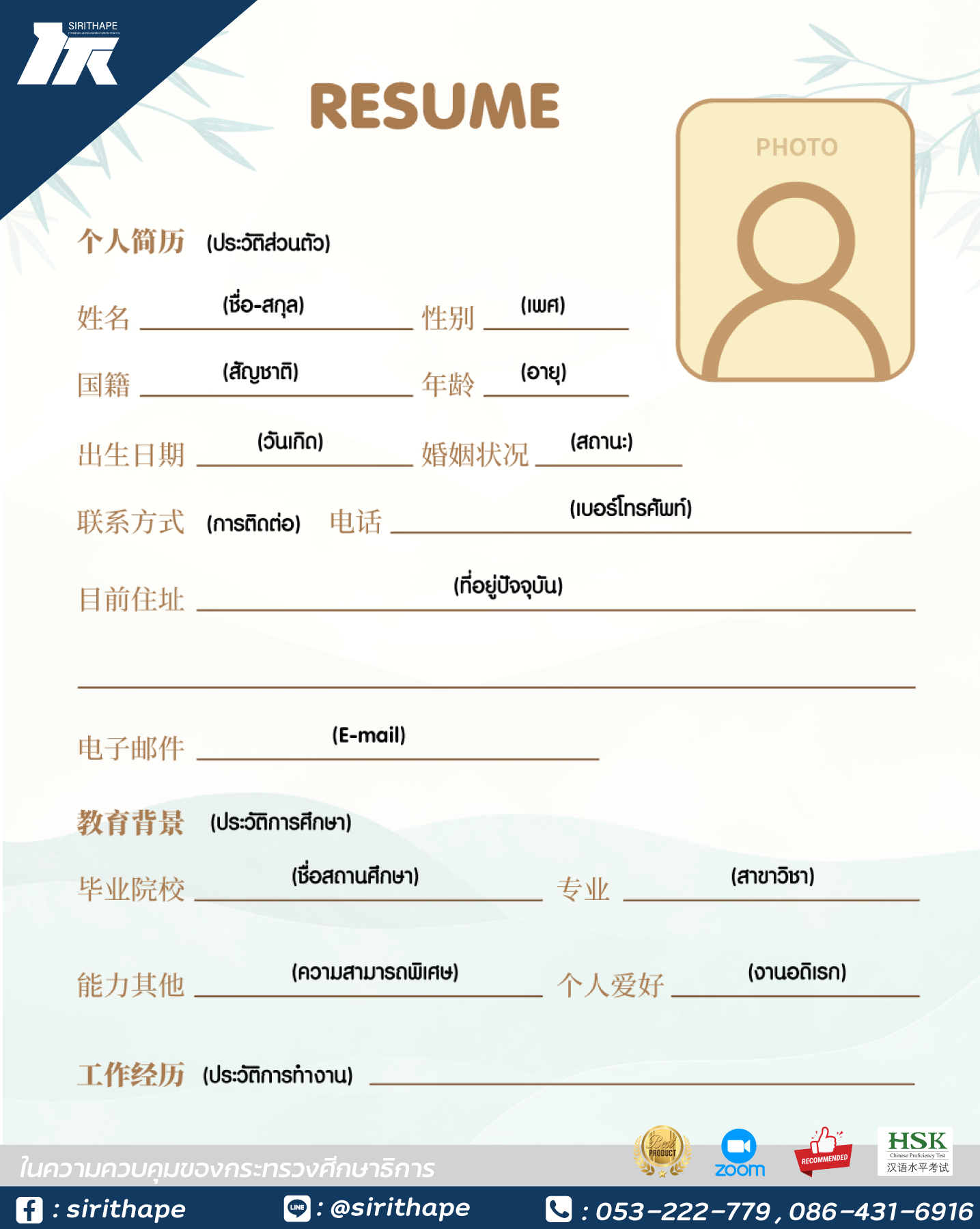 🇨🇳❤คำศัพท์ภาษาจีน สำหรับการเขียนเรซูเม่สมัครงาน🇨🇳❤