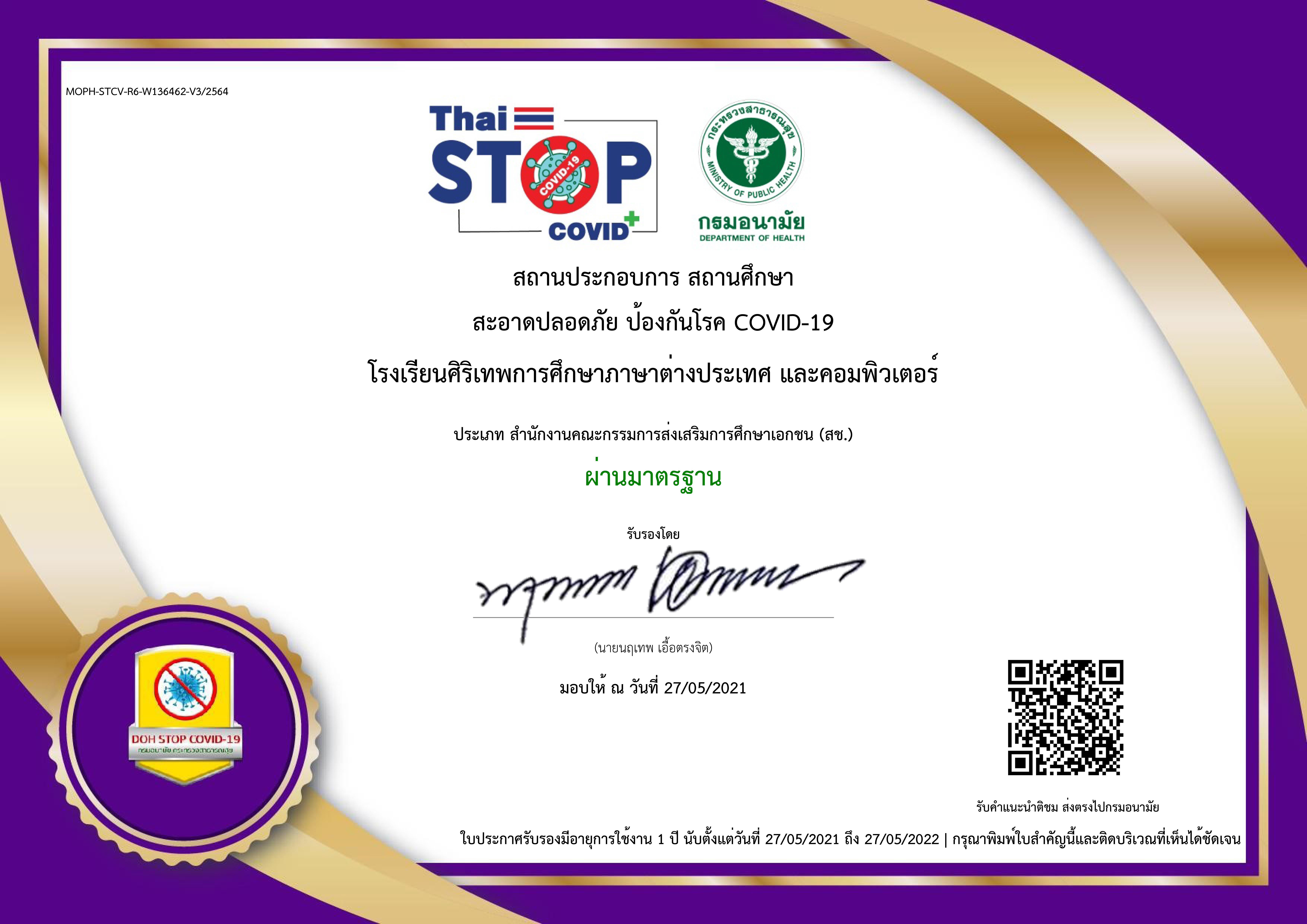 โรงเรียนศิริเทพภาษาต่างประเทศ ฯ ผ่านมาตราฐาน Thailand Stop Covid พร้อมเปิดบริการ On-site กุมภาพันธ์ นี้